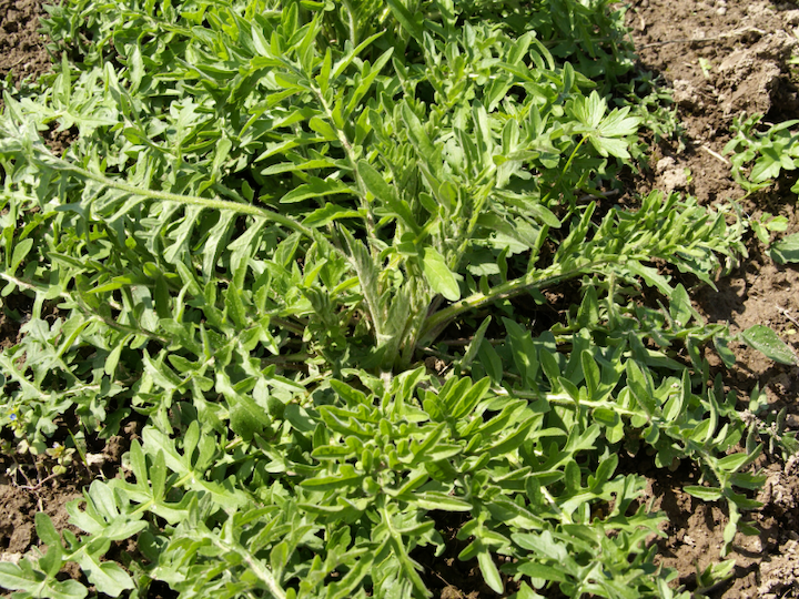 Am Boden bilden fiederteilige Blätter eine Rosette. Am Stängel sind die Blätter schmaler und feiner geschnitten.